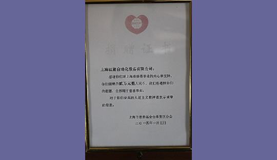 2015年,上海紅箭自動化設備有限公司為上海市慈善基金會捐款